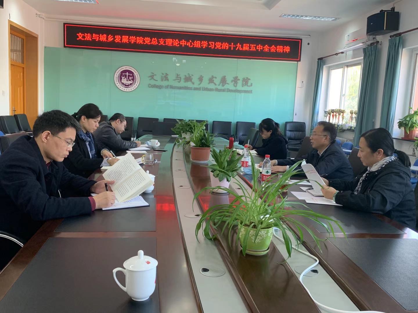2020年11月10日12:15,学校纪委李伟书书记参加并指导文发学院党总支理论中心组学习党的十九届五中全会精神,文发学院党总支书记赵洪娥、院长韩芳、党总支副书记威廉希尔副院长李云乐、教学工作副院长龚刚强、科研工作副院长夏龙参加了此次学习。会议由赵洪娥同志主持。