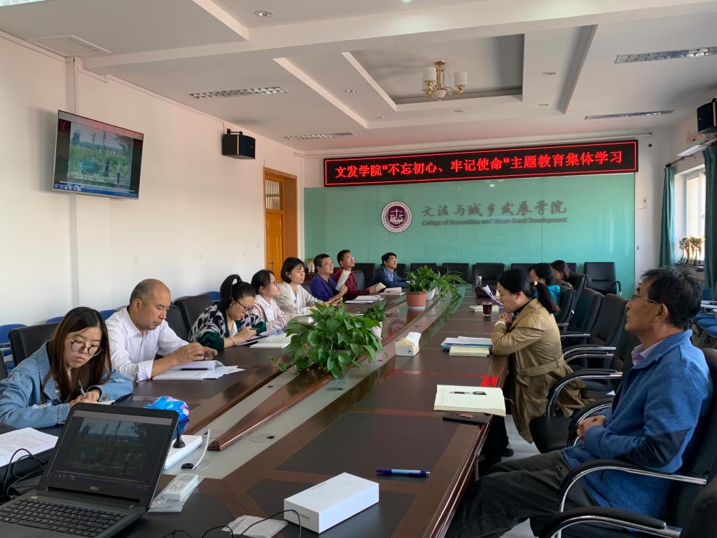 多措并举有效开展学习活动。文发学院开展形式多样的教育学习活动。一是积极开展集体学习,一方面领导班子、师生党员按照安排自学,另一方面学院组织集体学习。学院于2019年9月25日、10月9日在文发楼322开展集体学习,院领导班子、师生党支部书记参加集体学习,深入学习《习近平总书记关于“不忘初心牢记使命”论述摘编》、《习近平新时代中国特色社会主义思想学习纲要》、以及习近平总书记关于教育工作和北京工作的重要论述等,并观看相关视频。与会师生党员关于学习感受和心得展开了热烈的讨论。会后,各支部按照各支部学习计划,有序开展学习研讨活动。