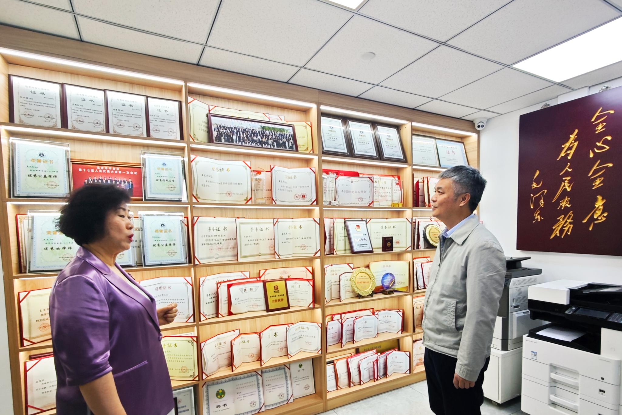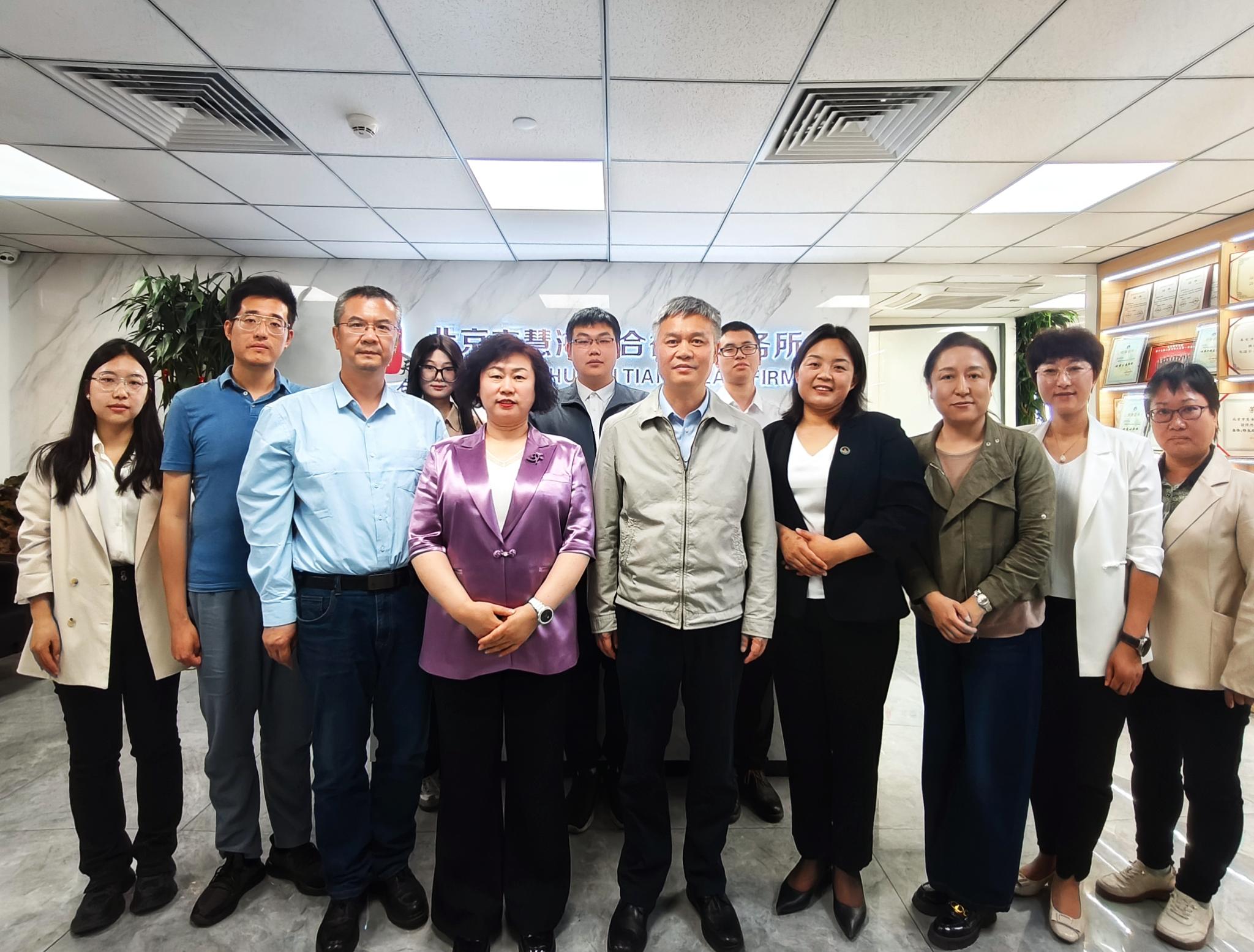 张劲柏一行实地调研了慧海天合律师事务所的办公区域和整体概况,深入了解了慧海的发展历程、业务领域及教学实践基地建设情况。