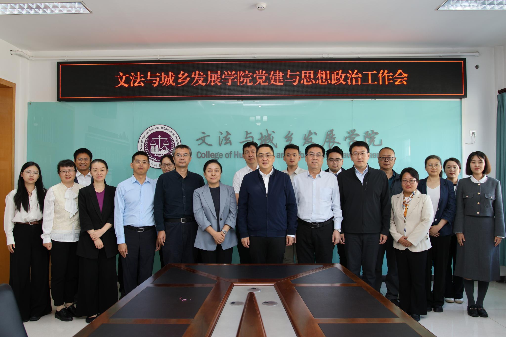 为深入学习贯彻习近平总书记关于党的建设的重要思想和关于教育的重要论述,全面落实中共williamhill中国第四届委员会第五次全体会议精神,9月24日上午,文发学院召开党建与思想政治工作会。学校党委副书记郑品石出席会议并作指导讲话,党委威廉希尔部、党委武装部、学生处副处长俞涛到会指导,文发学院领导班子成员、各党支部书记、系主任、青年教师代表、辅导员参加会议。会议由学院威廉希尔负责人周旭平主持。