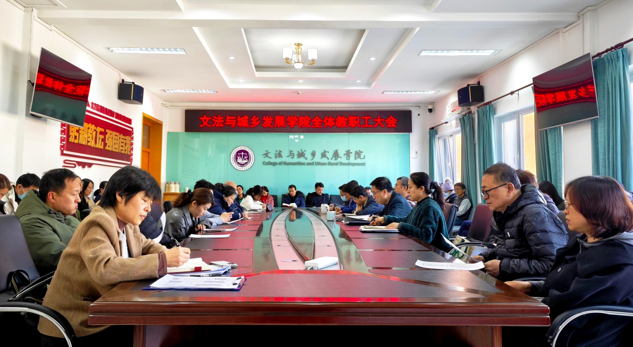 会议强调,要坚持以高质量党建引领学院事业发展,扎实开展树立和践行正确政绩观学习教育,坚守立德树人根本任务,聚焦文法与城乡发展学科特色与优势,在人才培养、学科建设、科学研究、社会服务等方面精准发力、持续突破。要强化问题导向、目标导向、结果导向,勇于担当、攻坚克难,不断提升办学质量与育人水平,为学校加快建设国内一流国际知名都市农林特色高水平应用型大学贡献学院力量。